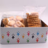 Boîte en métal garnie de 300 g de biscuits breton: 150g de p’tits sablés et  150g les galettes bretonnes.