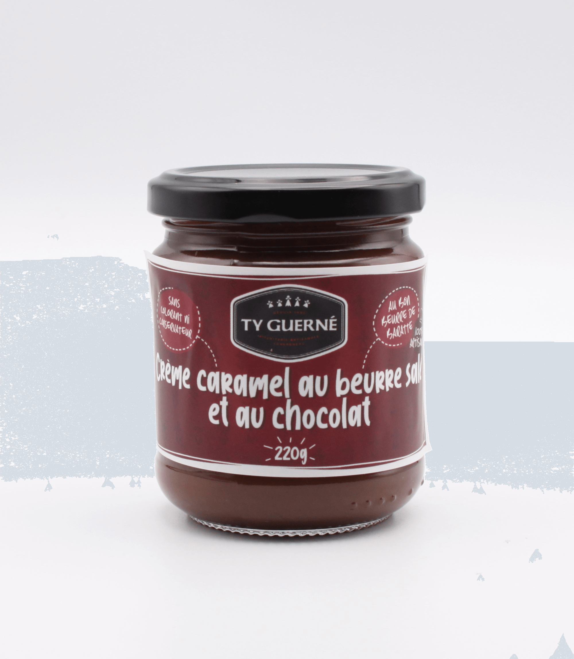 Ingrédients: sucre, crème fraîche, beurre de baratte frais salé (20%), chocolat 70% (cacao, beurre de cacao, lécithine de soja), glucose.
