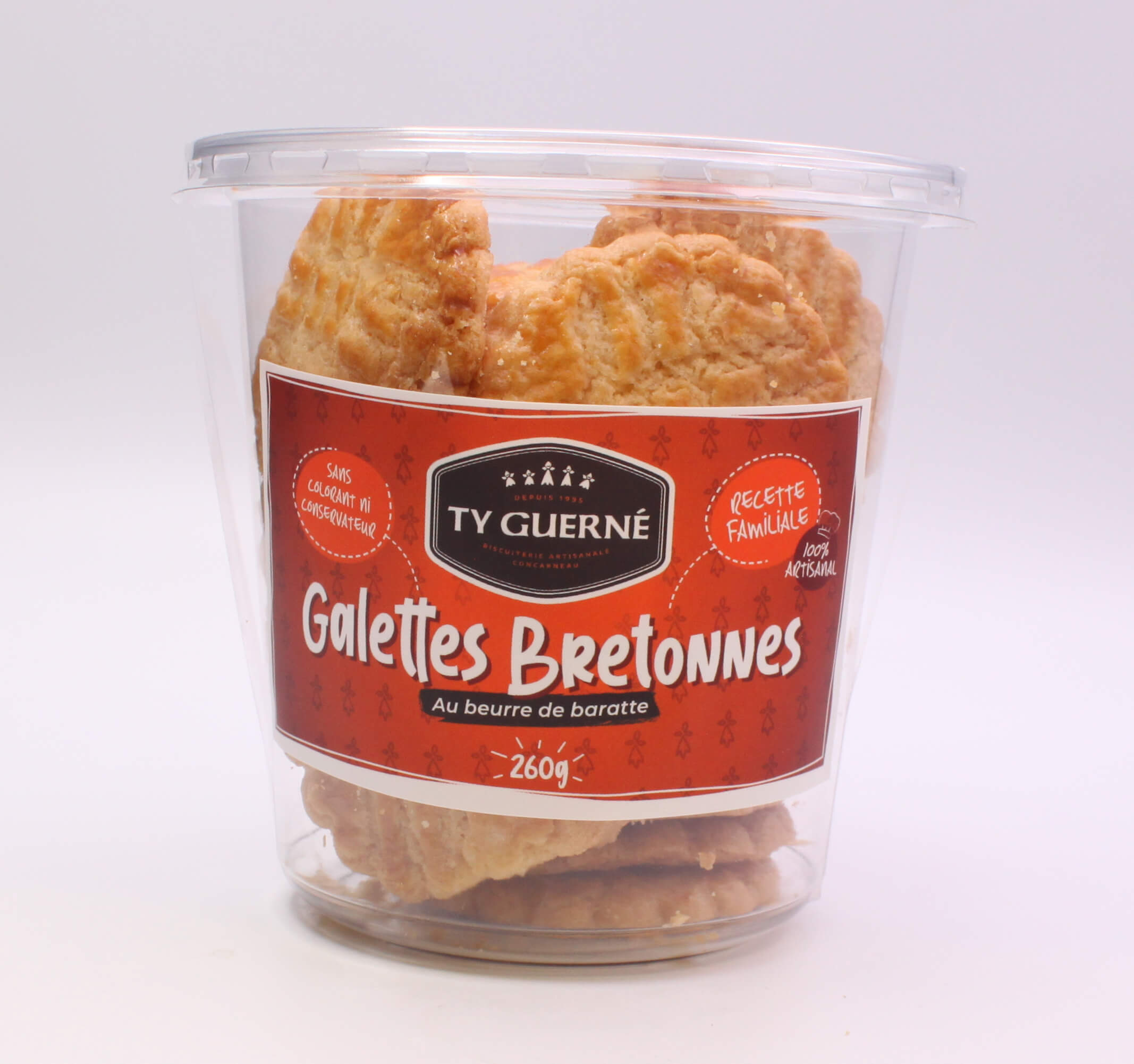 Ingrédients: farine de blé, sucre, beurre de baratte frais, jaune d’œuf, sel, poudre à lever bio (amidon de maïs, bicarbonate de sodium, tartrate monopotassique).