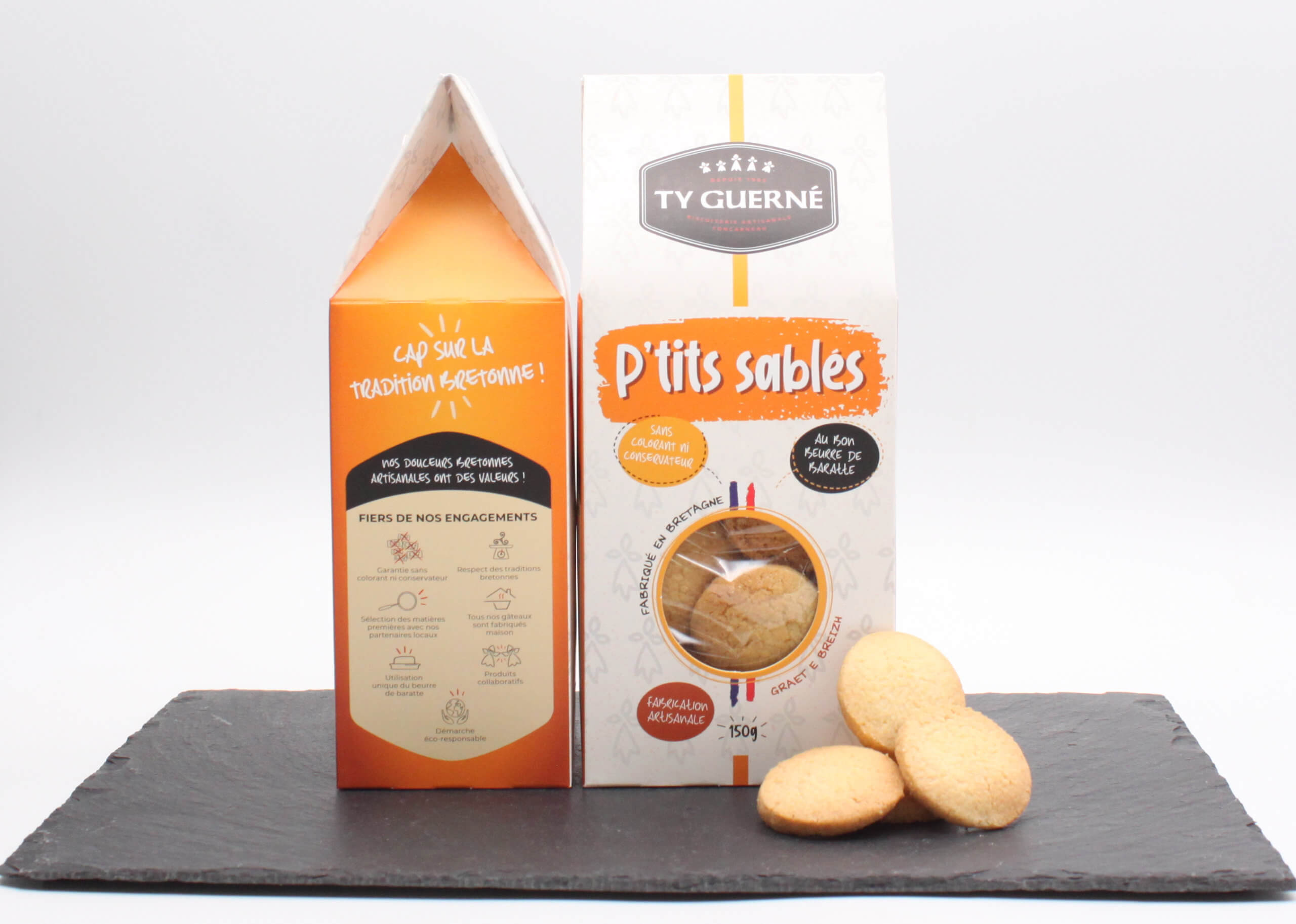 Ingrédients: farine de blé, sucre, beurre de baratte frais, jaune d’œuf, sel, poudre à lever bio(amidon de maïs, bicarbonate de sodium, tartrate monopotassique).