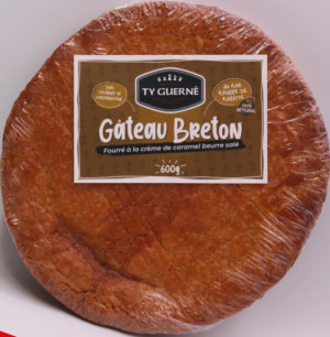 Ingrédients: farine de blé, sucre, beurre de baratte frais (25%), crème caramel au beurre salé (sucre, crème fraiche, beurre de baratte frais, glucose), jaune d’œuf, rhum, sel.