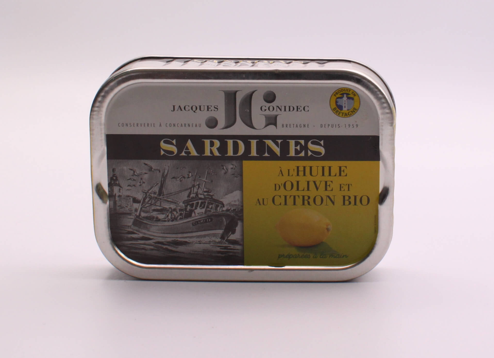 Ingrédients : sardines 75%, huile d’olive vierge extra 25%, citron, sel.